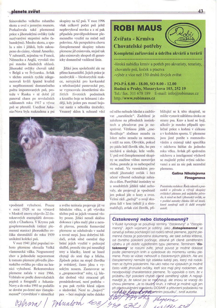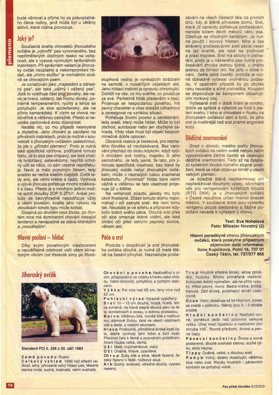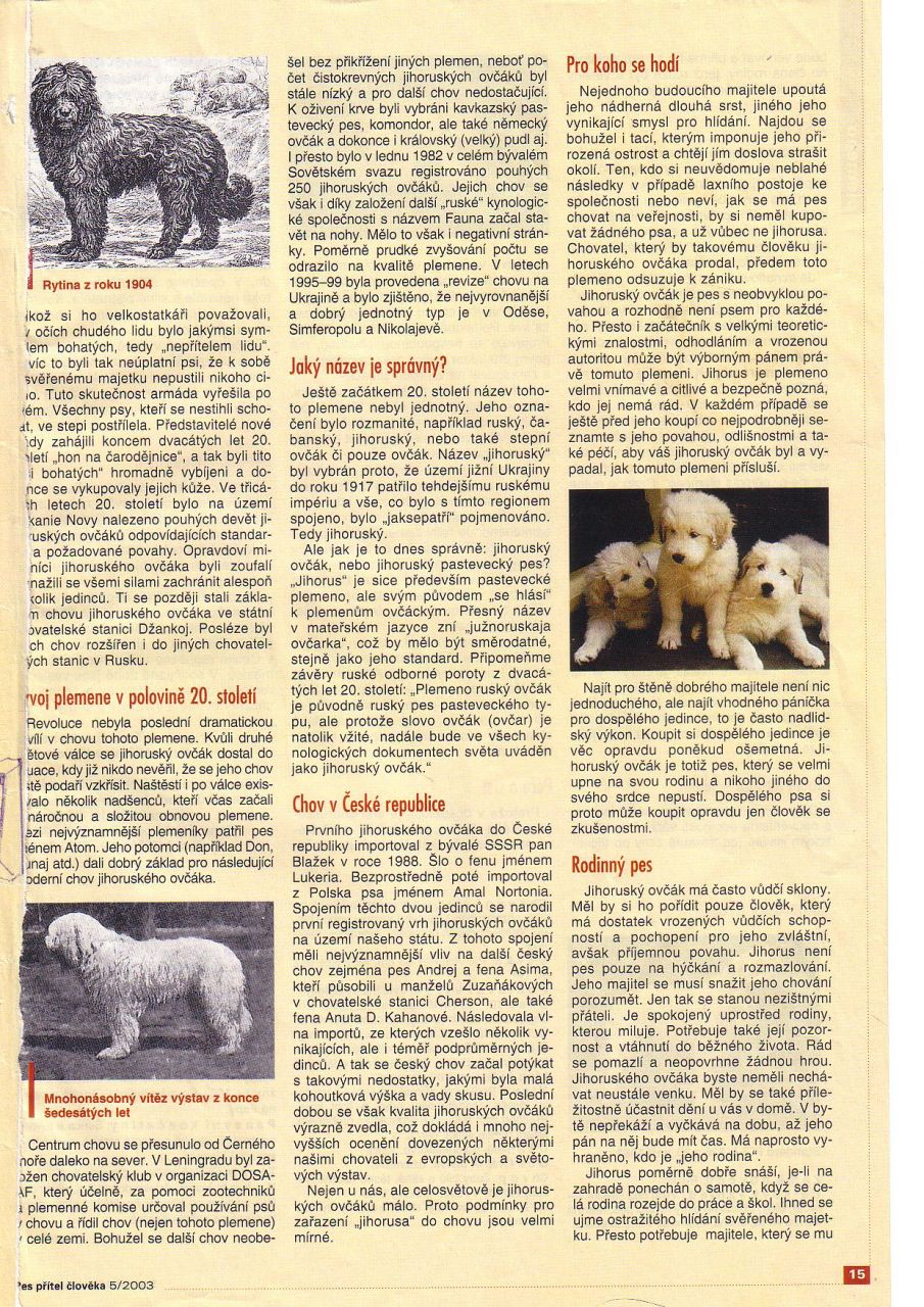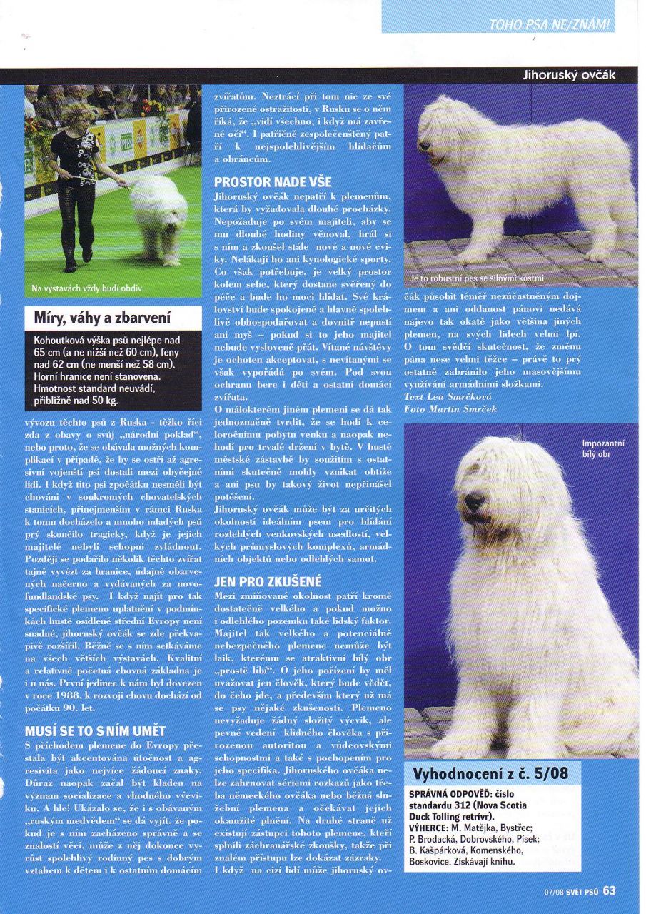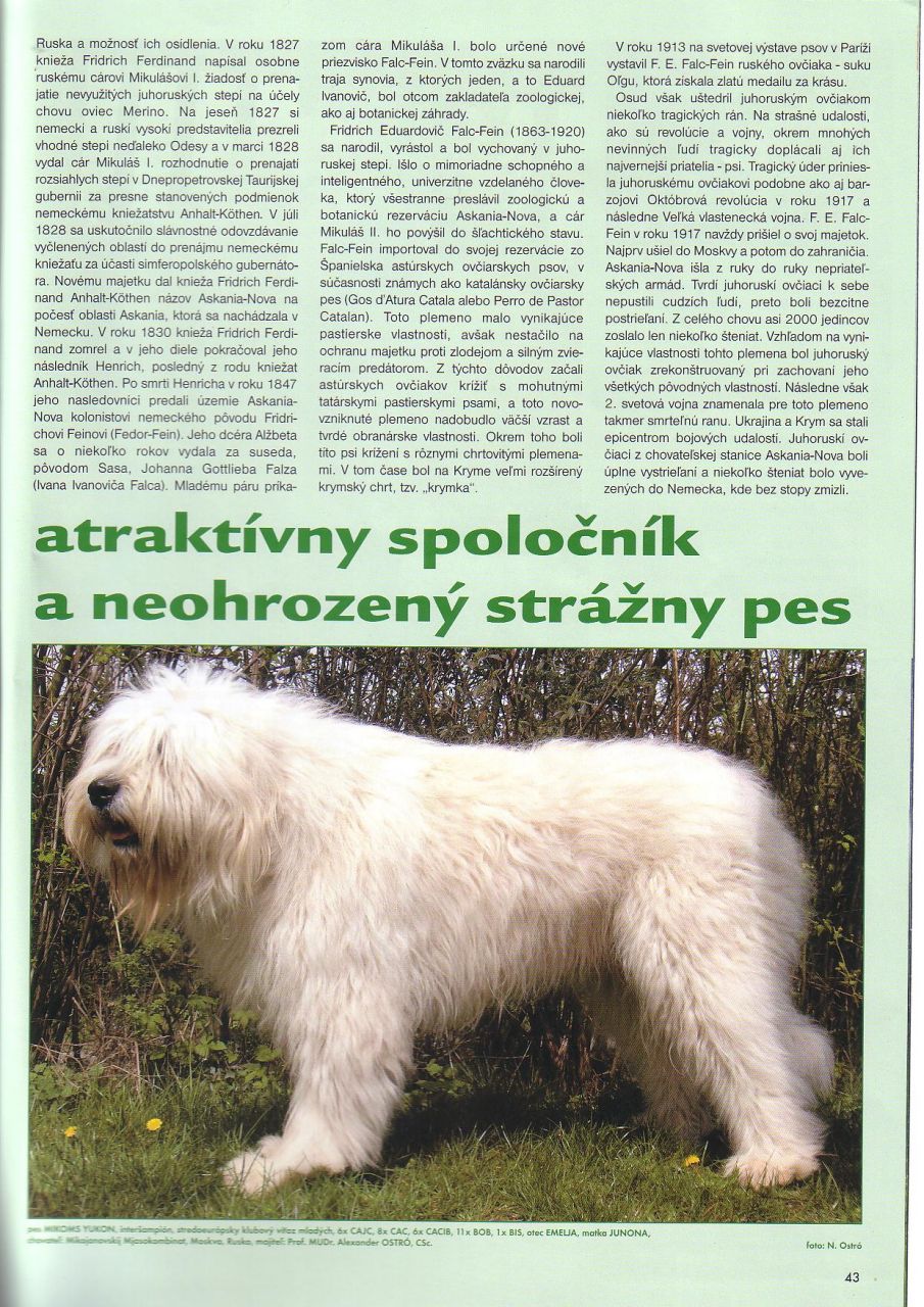 Jihoruský ovčák / Южноруссккая овчарка / South Russian ovtcharka / Dél-orosz juhászkutya / Owczarek południowo-rosyjski juzak