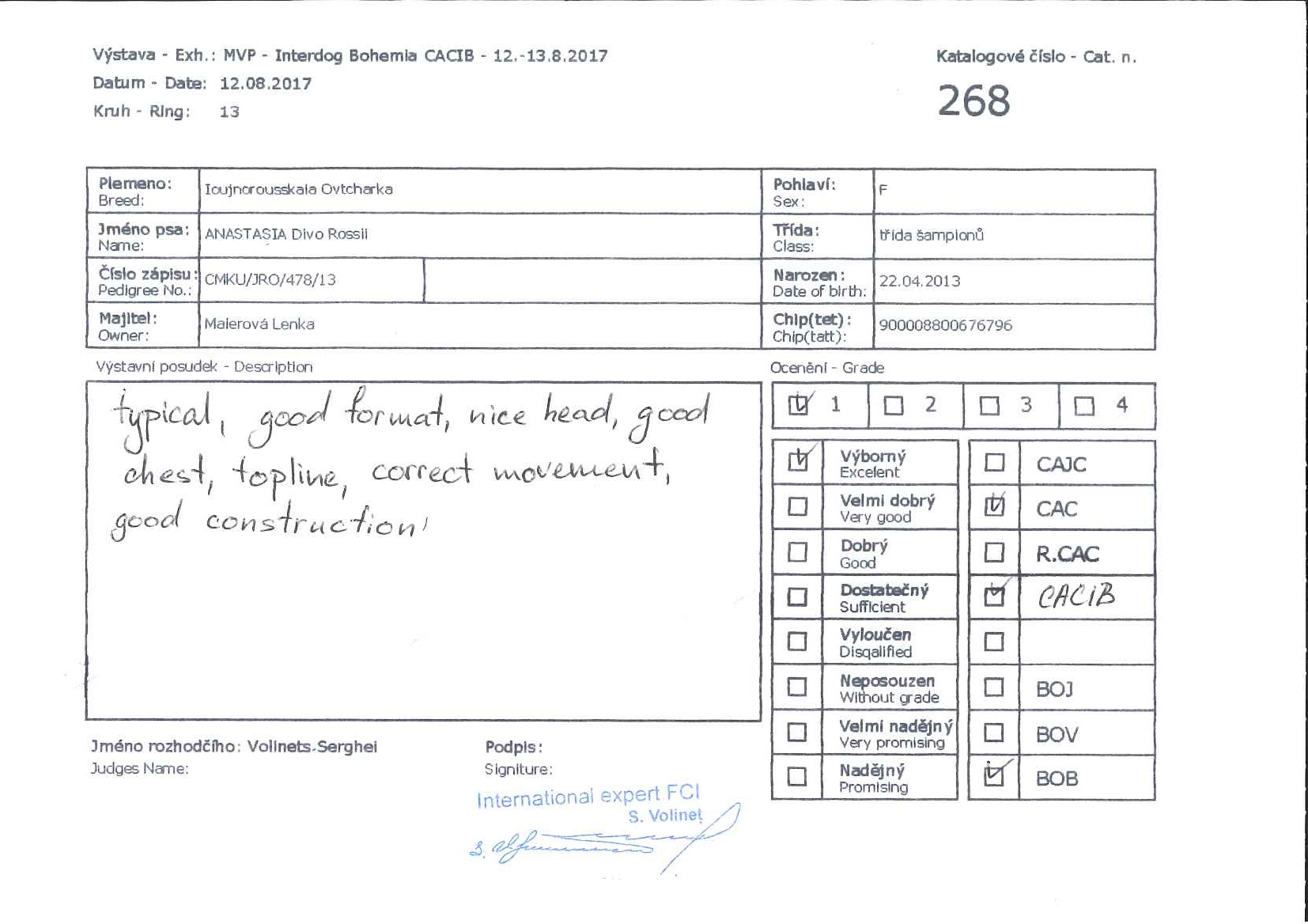 | EXC 1, CAC, CAC ČMKU, National winner, BOB | |